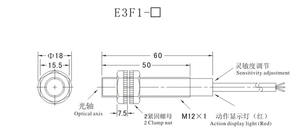温度范围-25—+60℃, +23℃时、±10%检测距离以内
